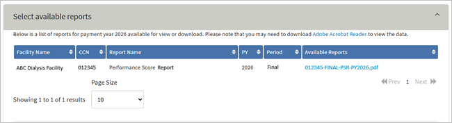 Authorized facility staff can view and download their PY 2026 ESRD QIP final Performance Score Reports (PSR), Patient List Reports (PLRs), and Performance Score Certificates (PCSs) in EQRS via the ESRD QIP User Interface (UI).